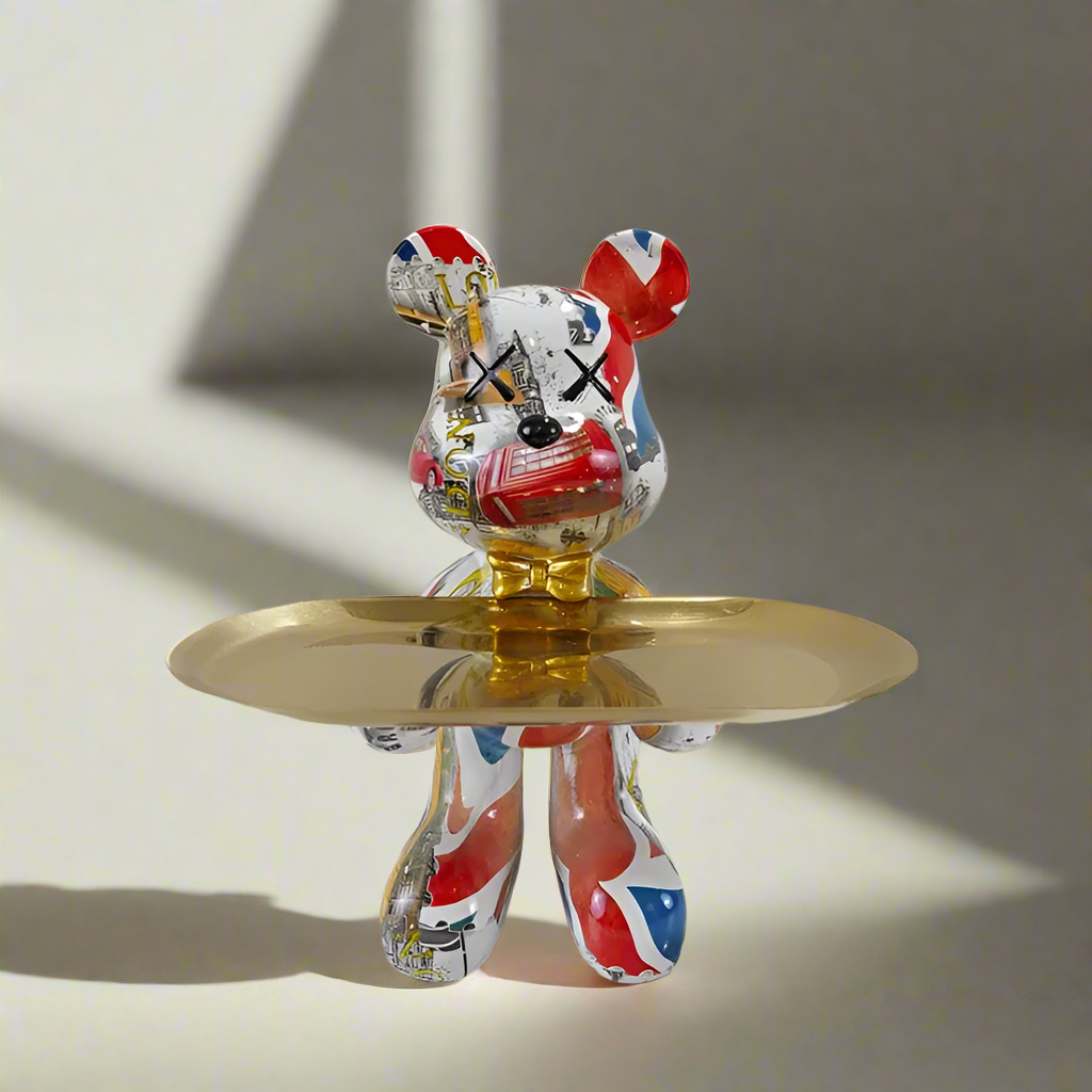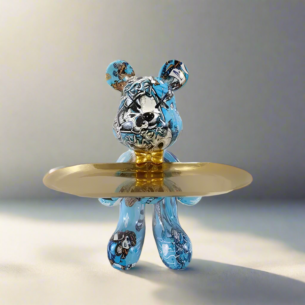 - Künstlerische Bärenskulptur mit integriertem Tablett.