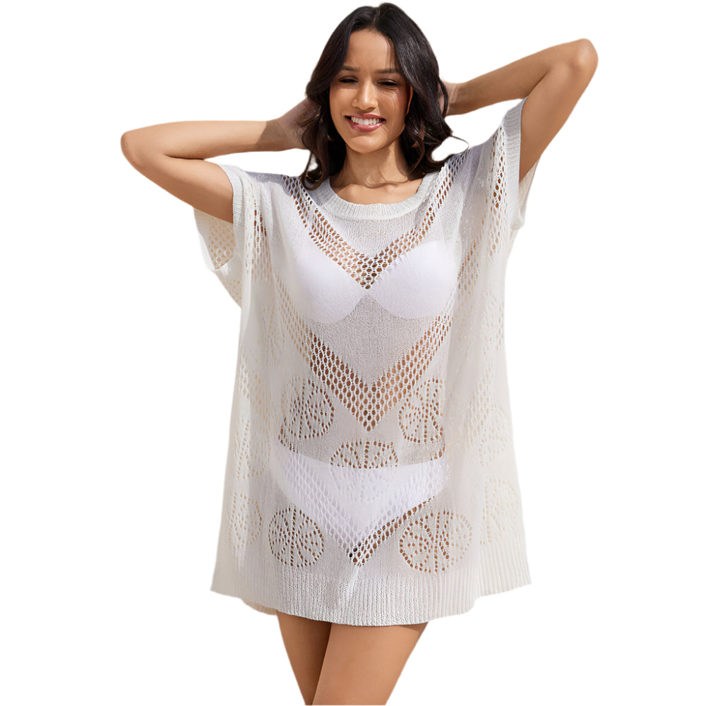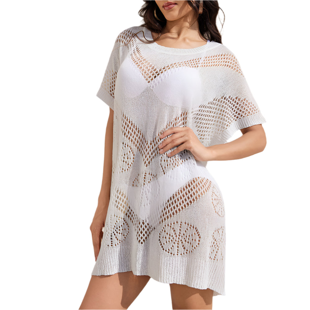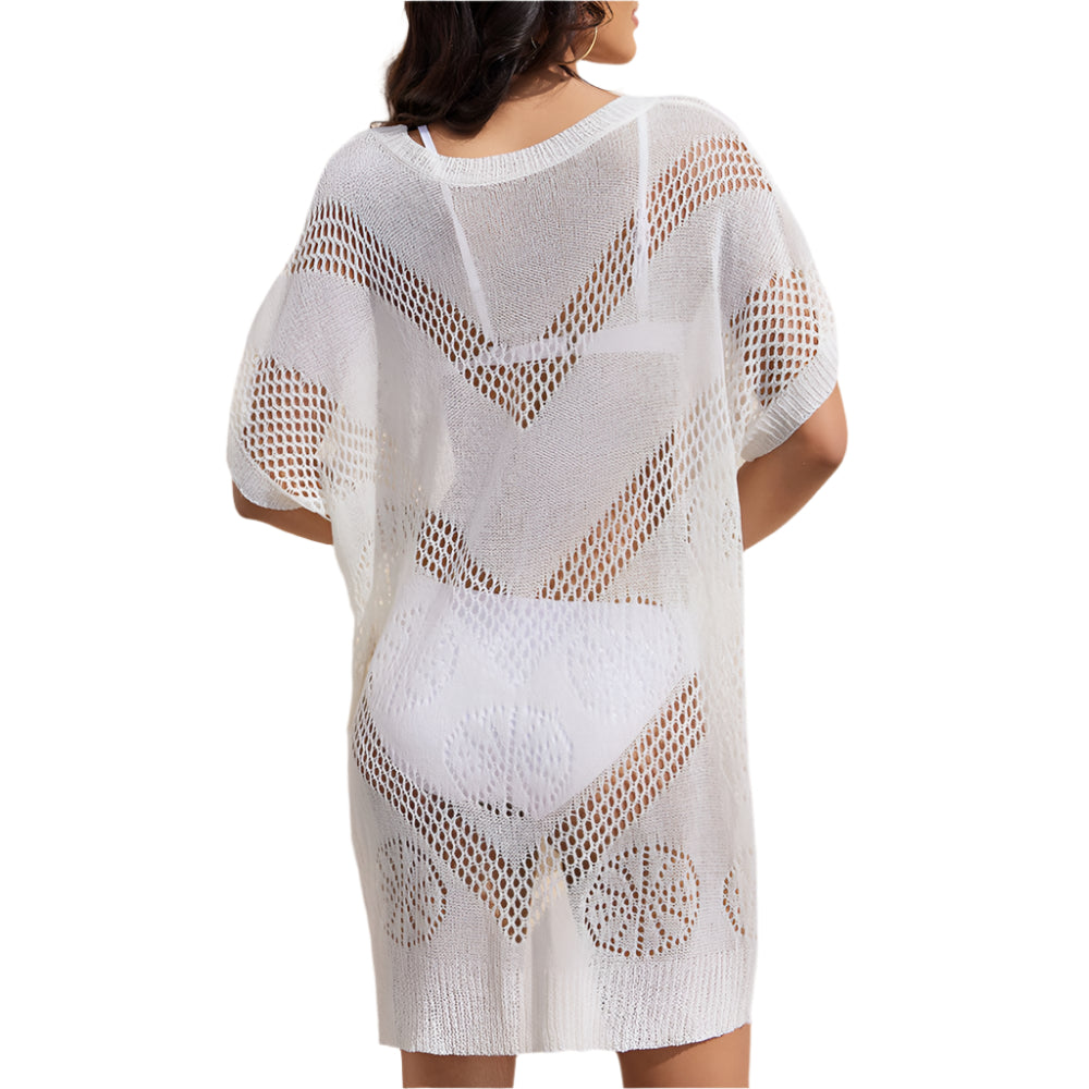 Tauche ein in eine Welt müheloser Strand-Glamour mit Darla - Offenes Strick-Brasilianisches Häkelüberwurf. Dieses leichte, offen gestrickte Überkleid ist die perfekte Kombination aus sinnlich und süß und bietet dir genau die richtige Menge an Bedeckung, während dein Badeanzug trotzdem durchscheint. Das brasilianisch inspirierte Häkelmuster fügt Textur und Charakter hinzu und macht es zur auffälligen Wahl sowohl für die Entspannung am Pool als auch für Spaziergänge am Strand.