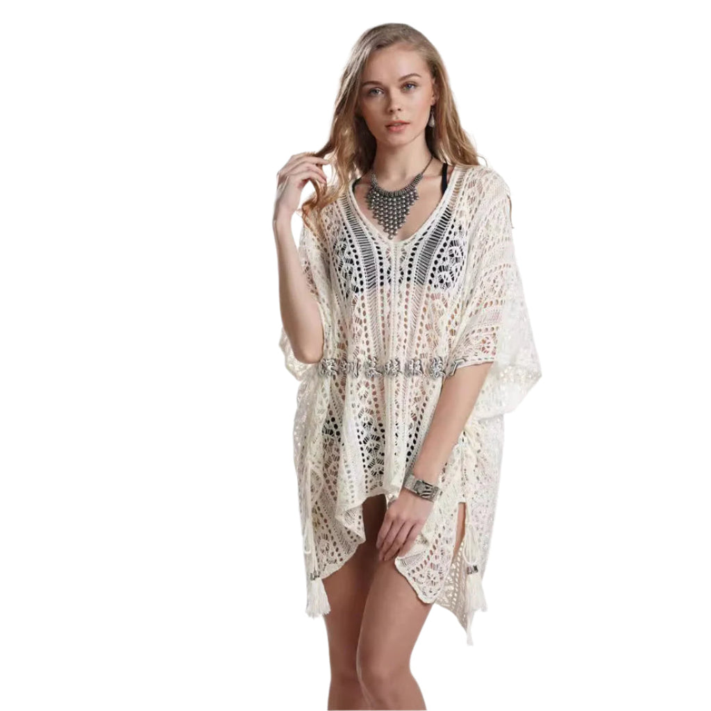 Dorothy - Lockere Bikinibedeckung bringt einen lässigen und entspannten Stil in Ihre Sommergarderobe. Entworfen, um einfach über Ihre Bademode geworfen zu werden, bietet es Abdeckung, ohne auf Stil zu verzichten. Die lockere Silhouette und der leichte Stoff machen es ideal für sonnige Strandtage oder zum Entspannen am Pool, sodass Sie sich frei bewegen können, während Sie mühelos stilsicher aussehen.