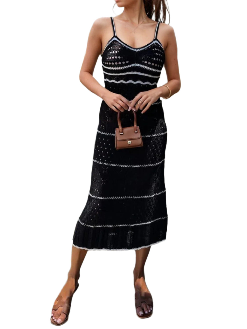 Fange Blicke mit Sammy - Oberbekleidung für Spaghettiträger mit offenen Stichen, dein neues Lieblingsstück, um jeder Sommergarderobe eine leichte Eleganz hinzuzufügen. Mit ihrem offenen Strickdesign und der lockeren Silhouette ist sie perfekt, um über Badebekleidung, Tops oder Kleider getragen zu werden, während sie dich frisch und stilvoll hält.